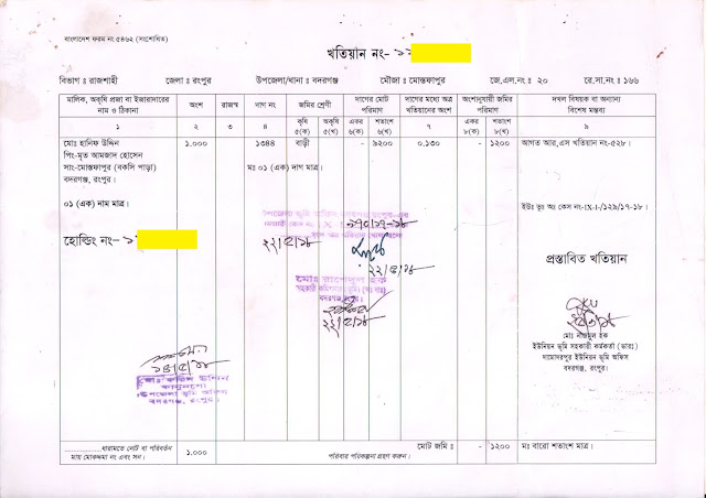 | নতুন ধারার অনলাইন নামজারি খতিয়ান |